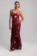 Premium sarong style drap skirt designed to accentuate the body with a graceful draped front and long clean lines. Featuring an adjustavle wait with button fastening and additional self tie detail, this skirt offers a personalised fit for effortless comfort. Finished with a back slit for ease of movement, the Kusuma skirt made from hand stamped batik on breathable cotton, blends elegances, modern and strong cultural expression, perfect for both festive and casual styling.